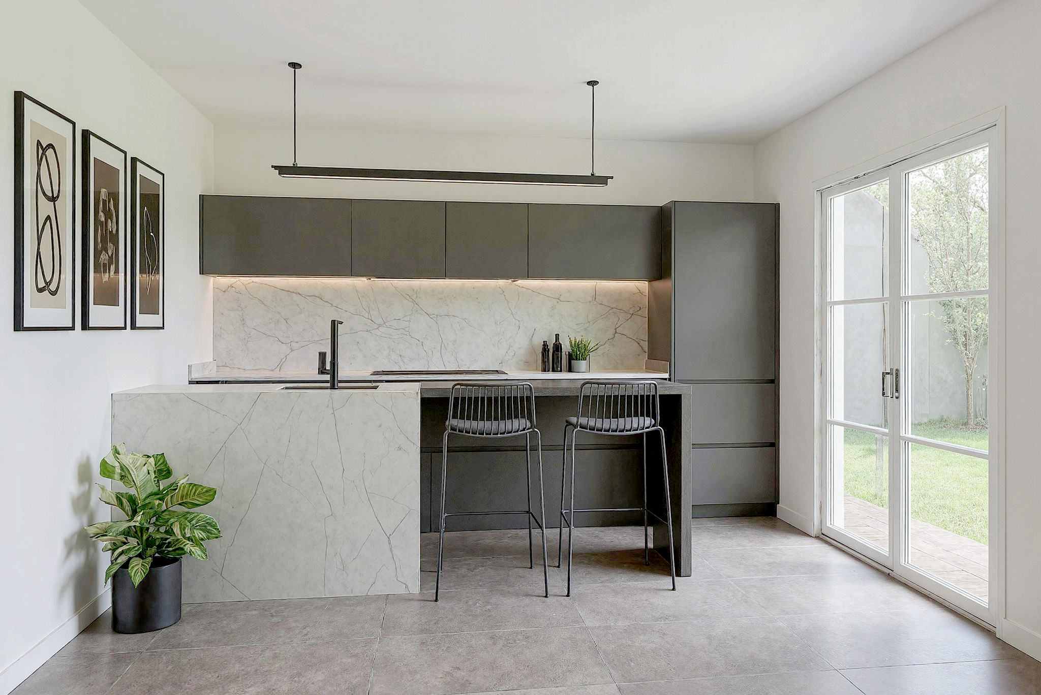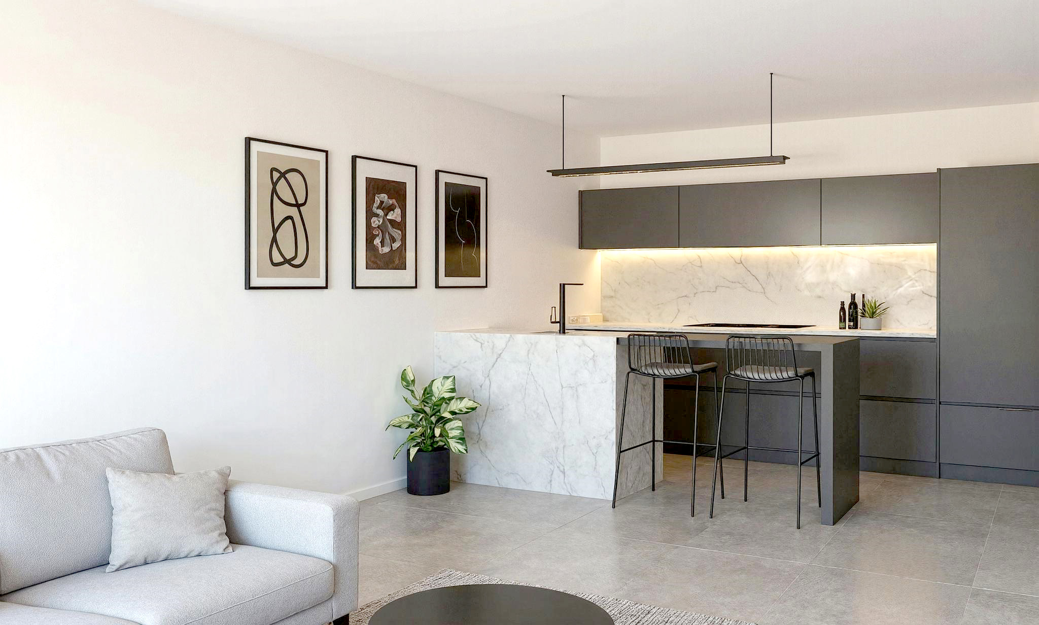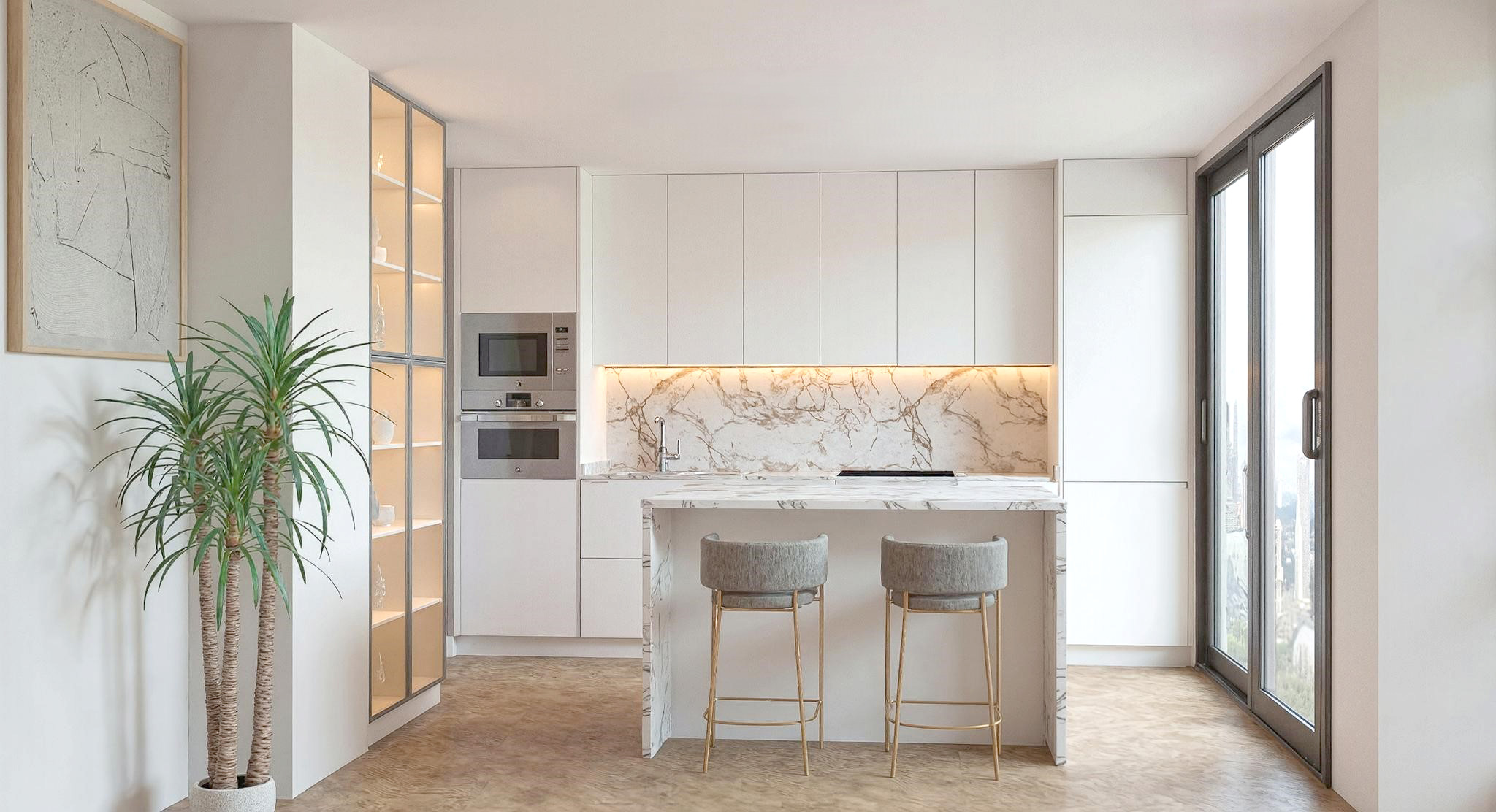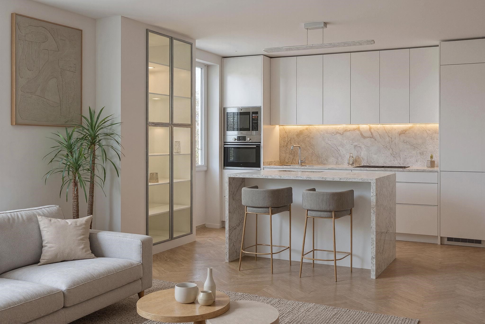 En una cocina minimalista, la isla central se convierte en el verdadero protagonista. Su diseño limpio y funcional aporta superficie extra de trabajo, almacenaje integrado y, en muchos casos, una zona para reuniones informales. Todo ello se resuelve con frentes lisos, ausencia de tiradores y una paleta cromática neutra que refuerza la calma visual. Los acabados mate o satinados, combinados con materiales de alta calidad, permiten que la isla destaque sin romper la armonía del conjunto. Así, una cocina minimalista con isla transmite orden, sofisticación y serenidad en un único espacio.