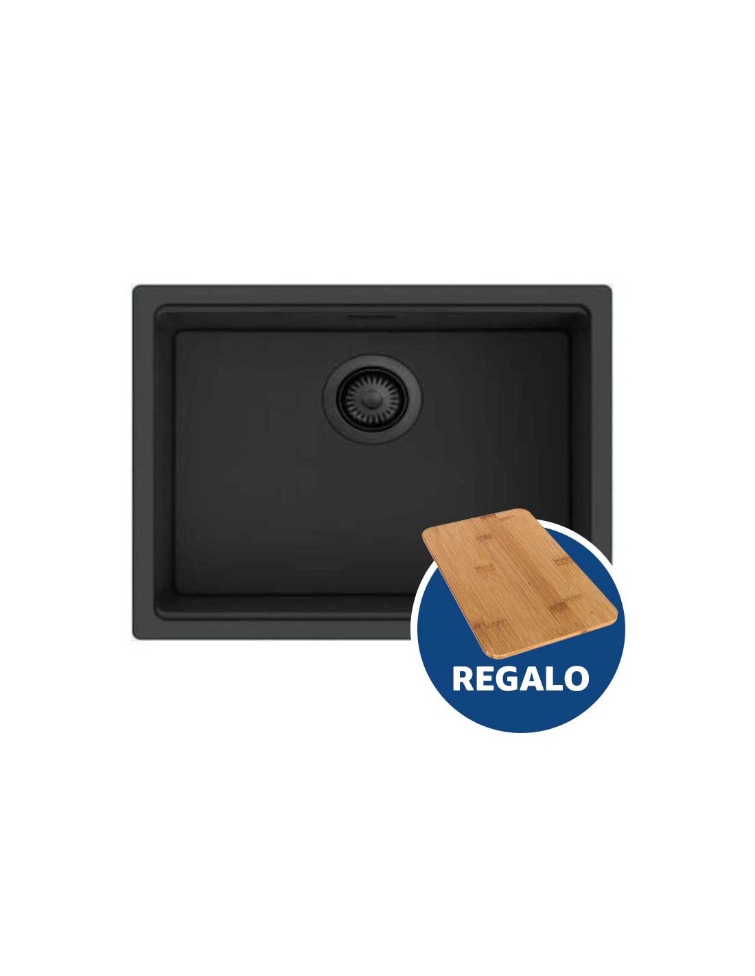 Fregadero bajo encimera de color negro con tabla de corte de REGALO. El precio rebajado y el regalo están disponibles solo hasta agotar stock.