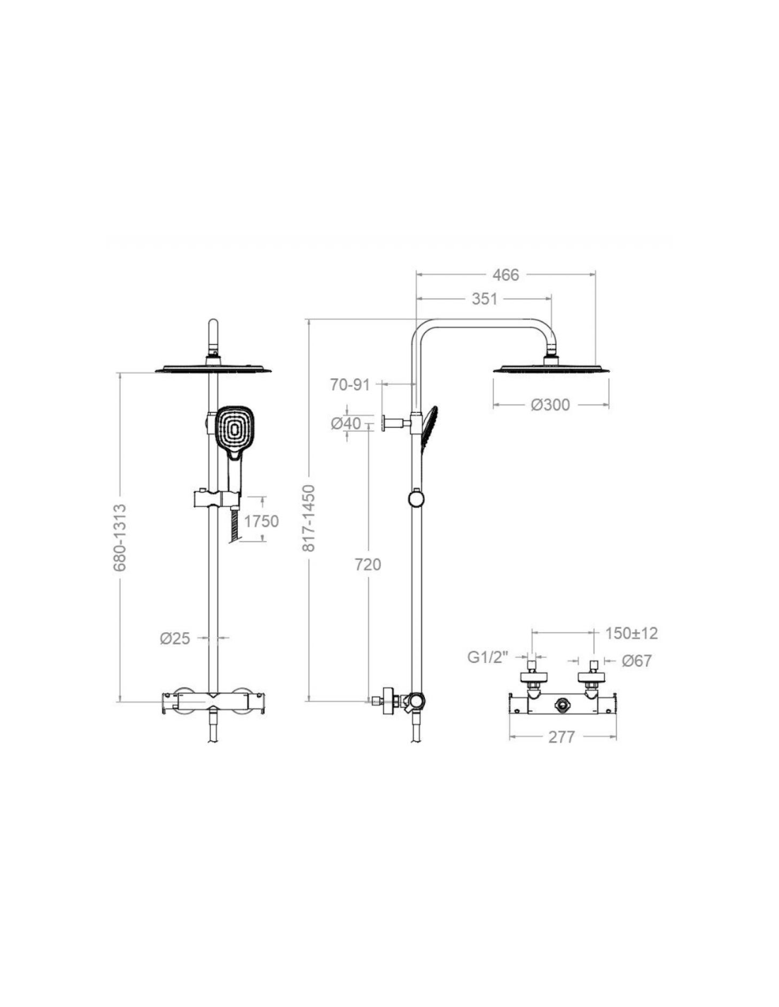 Medidas columna ducha termostática redonda Blautherm RS