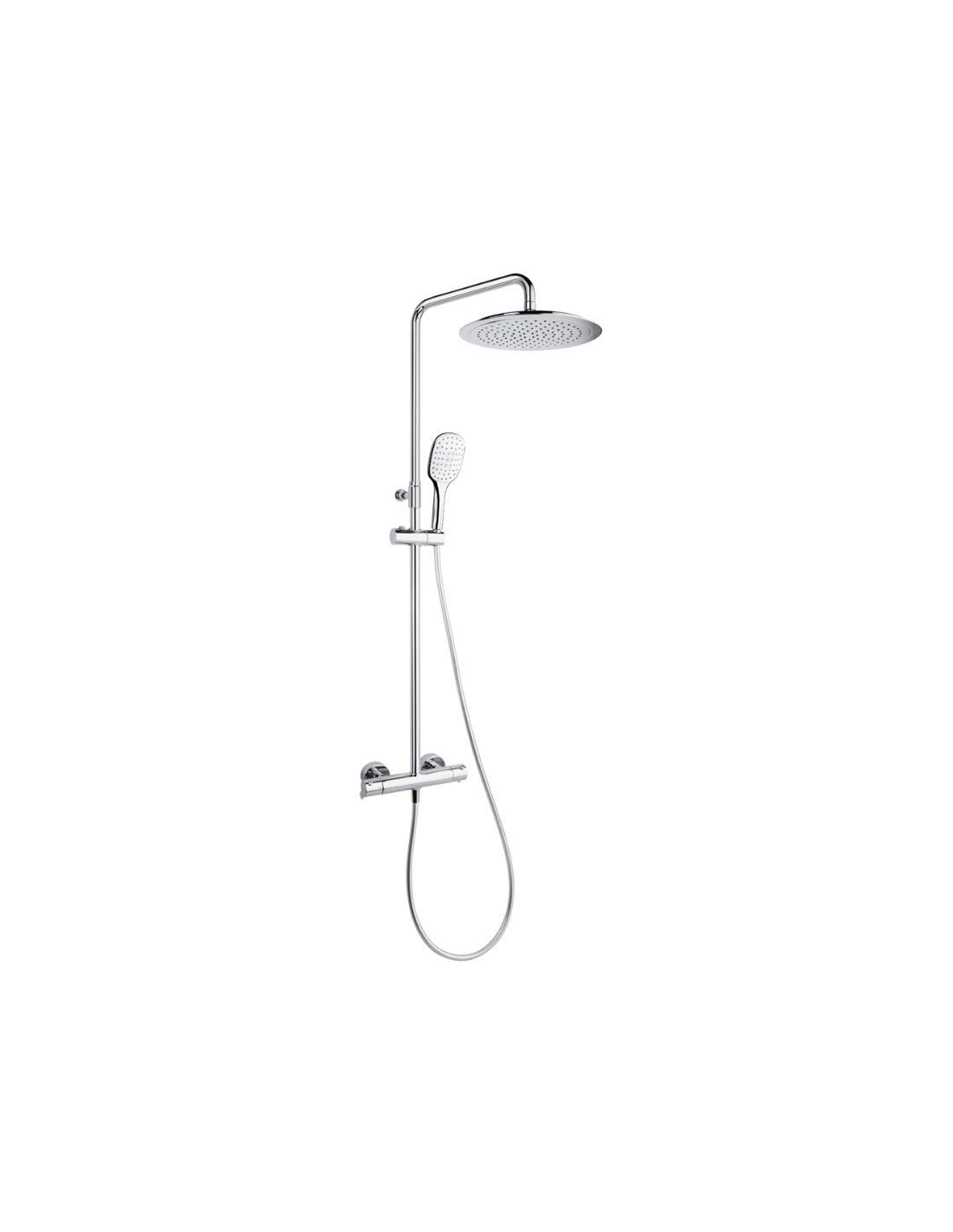 Conjunto de ducha cromado Blautherm con rociador redondo de 30x30 cm. Regulable en altura.
