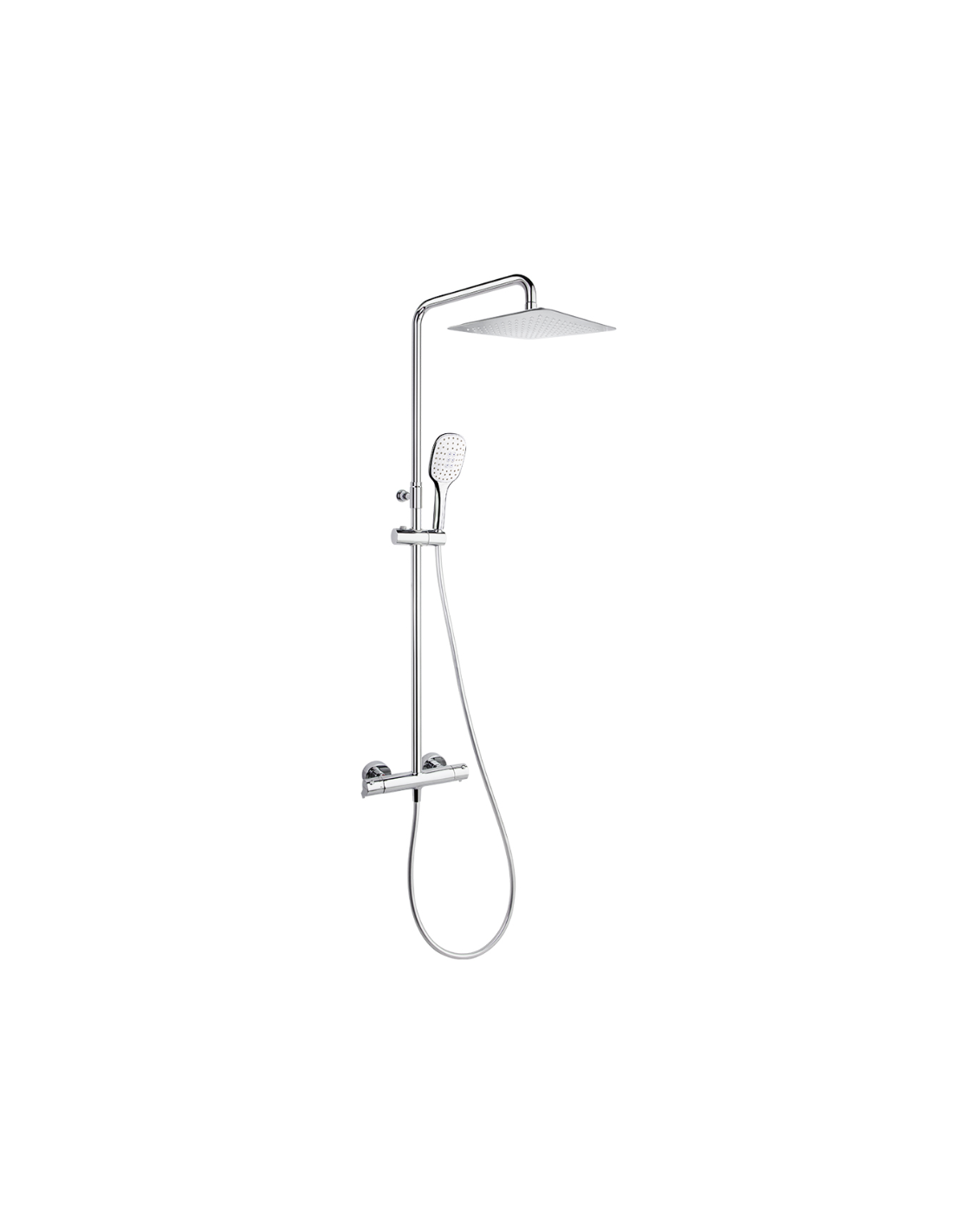 Conjunto de ducha cromado Blautherm con rociador cuadrado de 30x30 cm. Regulable en altura.