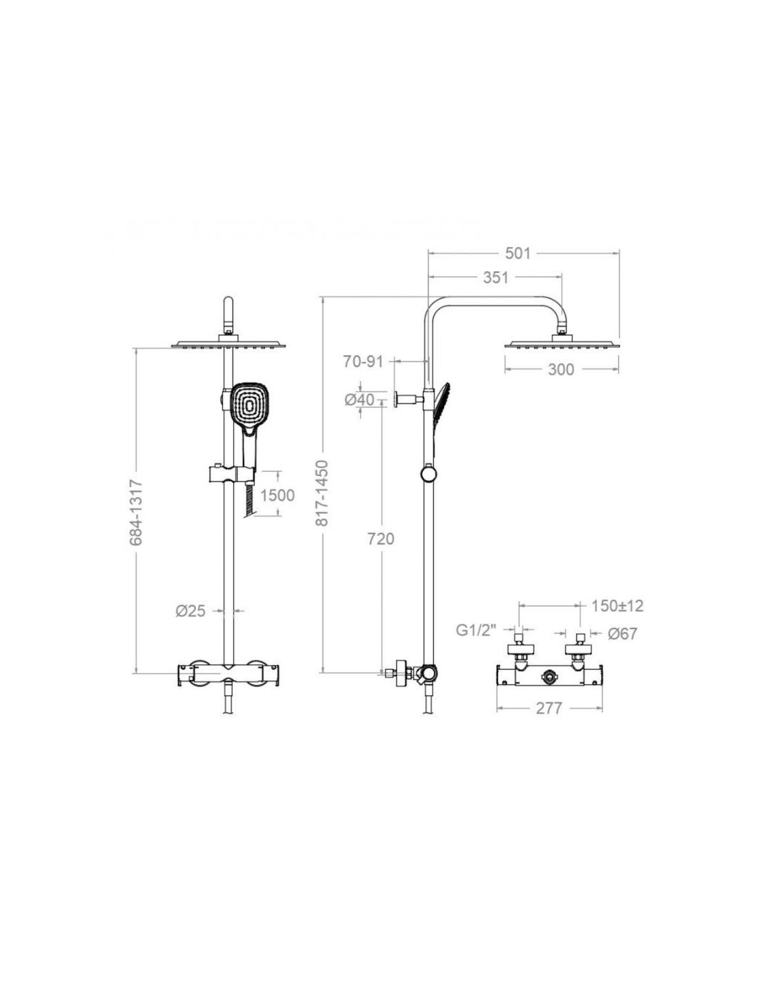 Medidas Columna ducha termostática cuadrada Blautherm RS