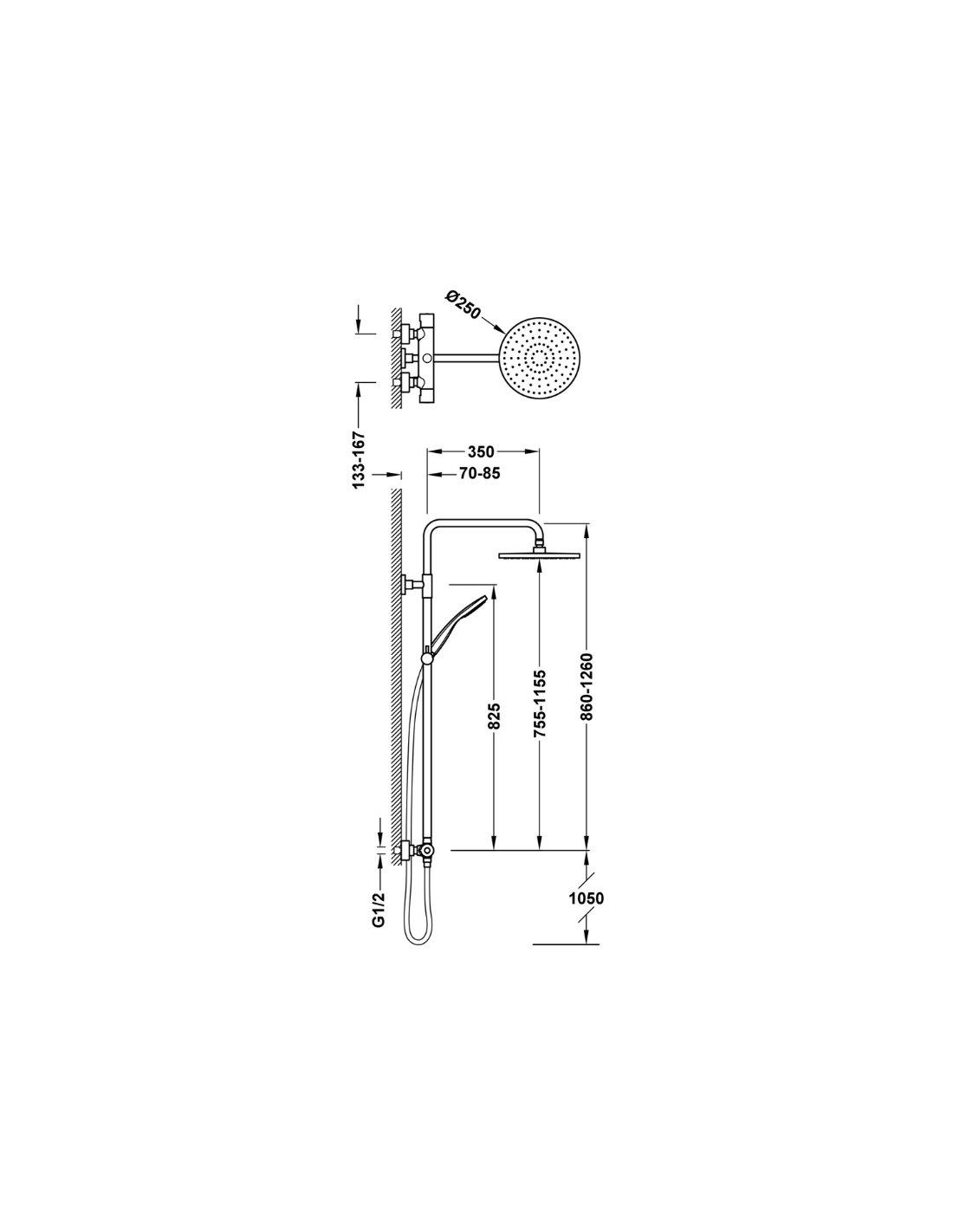 Medidas columna ducha termostática telescópica Baseplus TRES