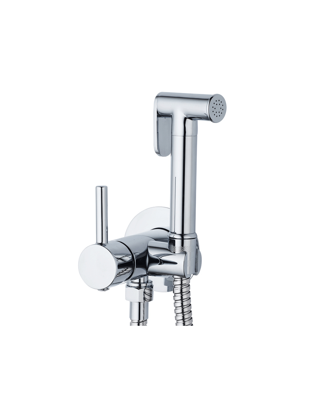 • La ducha WC de agua fría y caliente para sustituir el bidet, está compuesta por: Monomando de bidet para empotrar con soporte para la ducheta, flexo super reforzado de 1,20 m y ducheta pulsante de cierre.