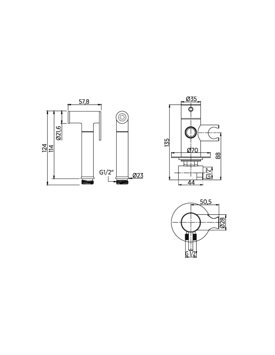 La ducha WC con monomando empotrado de agua fría-caliente, está compuesto por: