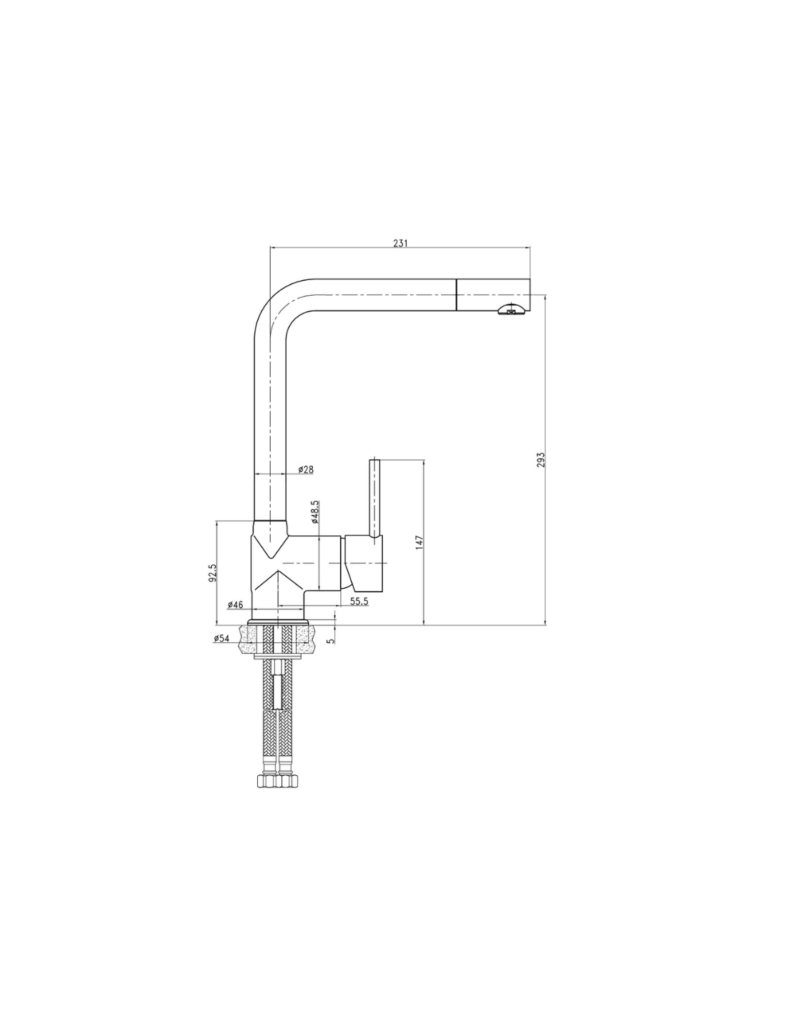 Medidas grifo cocina Grycoter GF101