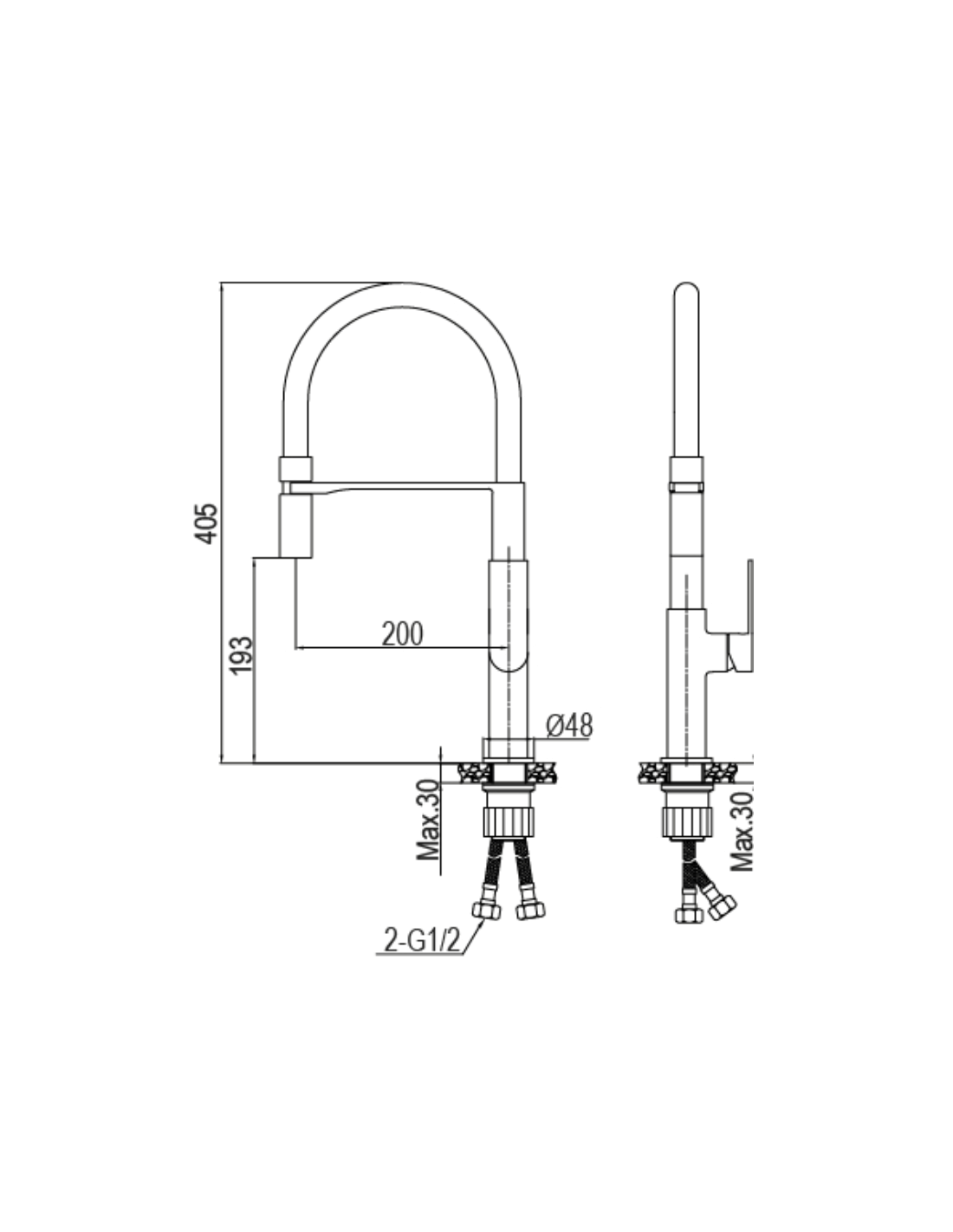 Monomando de fregadero de caño alto modelo DYNAMO acabado Cromo-Brillo