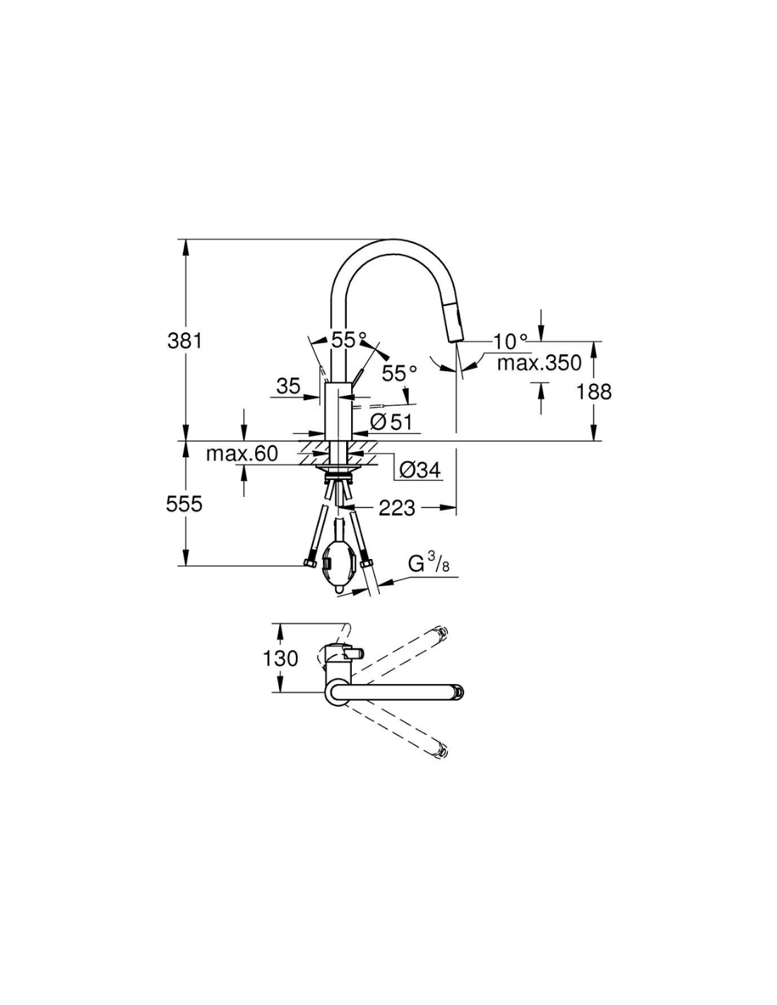 Medidas grifo cocina extraíble Grohe Eurosmart Cosmopolitan