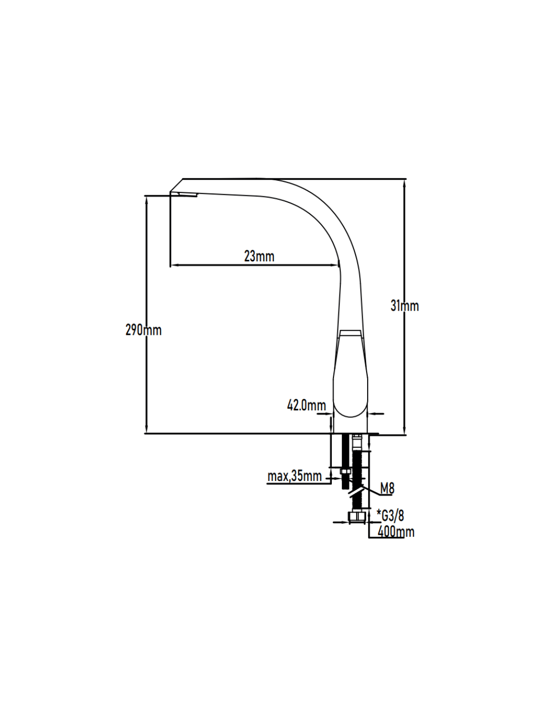 Monomando de fregadero de caño alto modelo DYNAMO acabado Cromo-Brillo