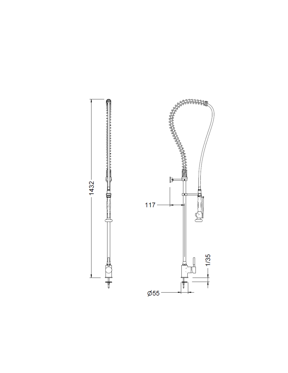 Grifo de cocina industrial pre-lavado GENEBRE. (Medidas)