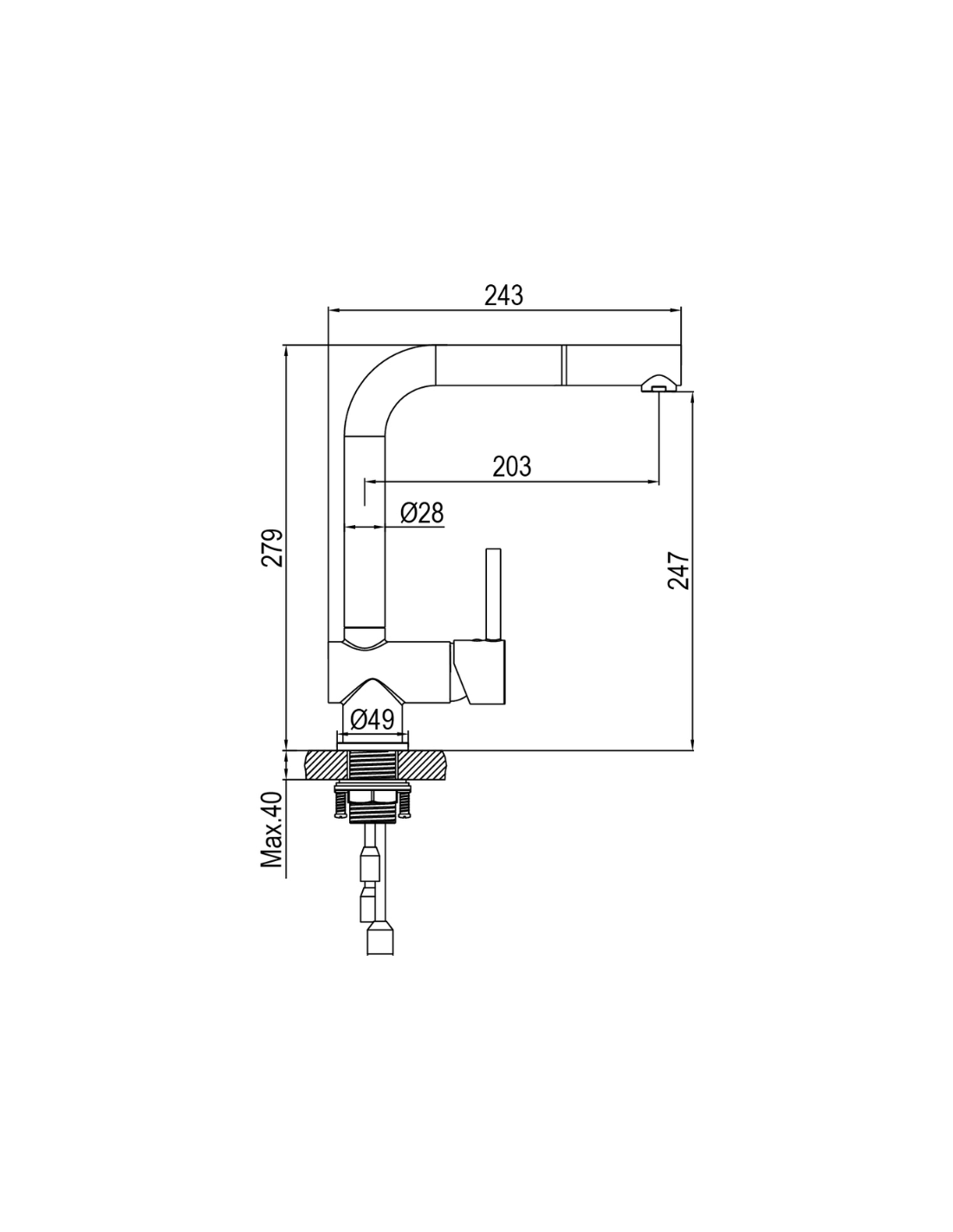 Medidas grifo cocina Luft V AQUAGRIF