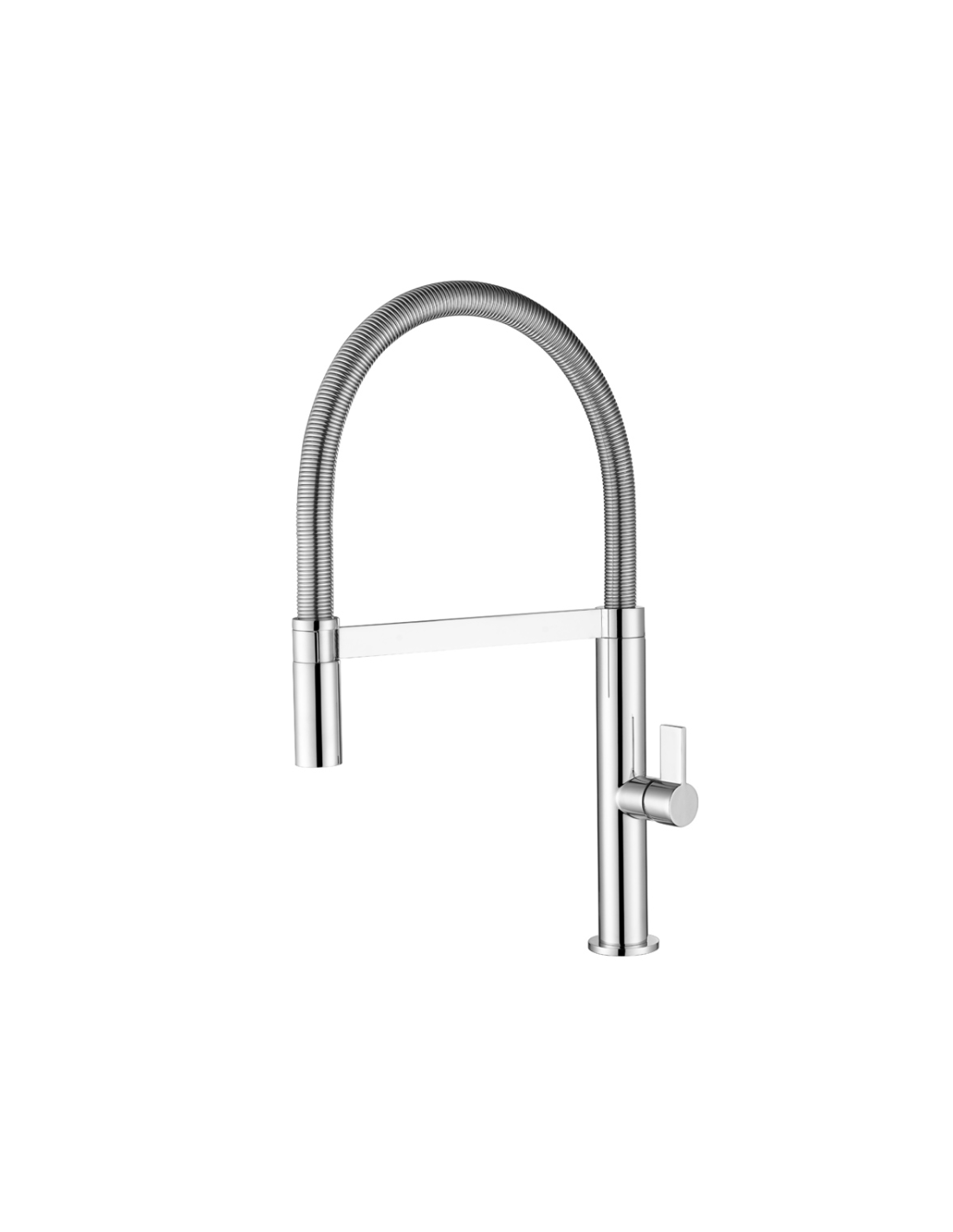 Monomando de fregadero ALPHA, de CAÑO MUELLE, acabado Cromo/Negro mate. Incluye latiguillos con certificado AENOR.