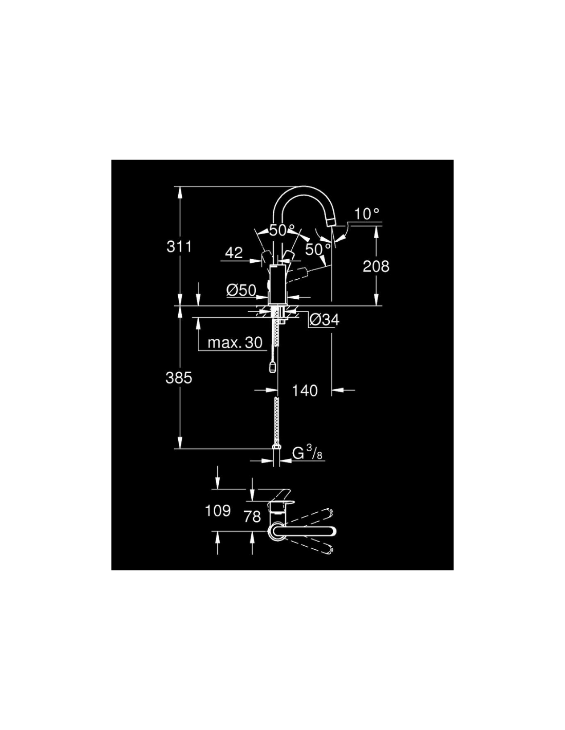 Monomando alto de lavabo CUADRO-TRES, caño "Cascada".