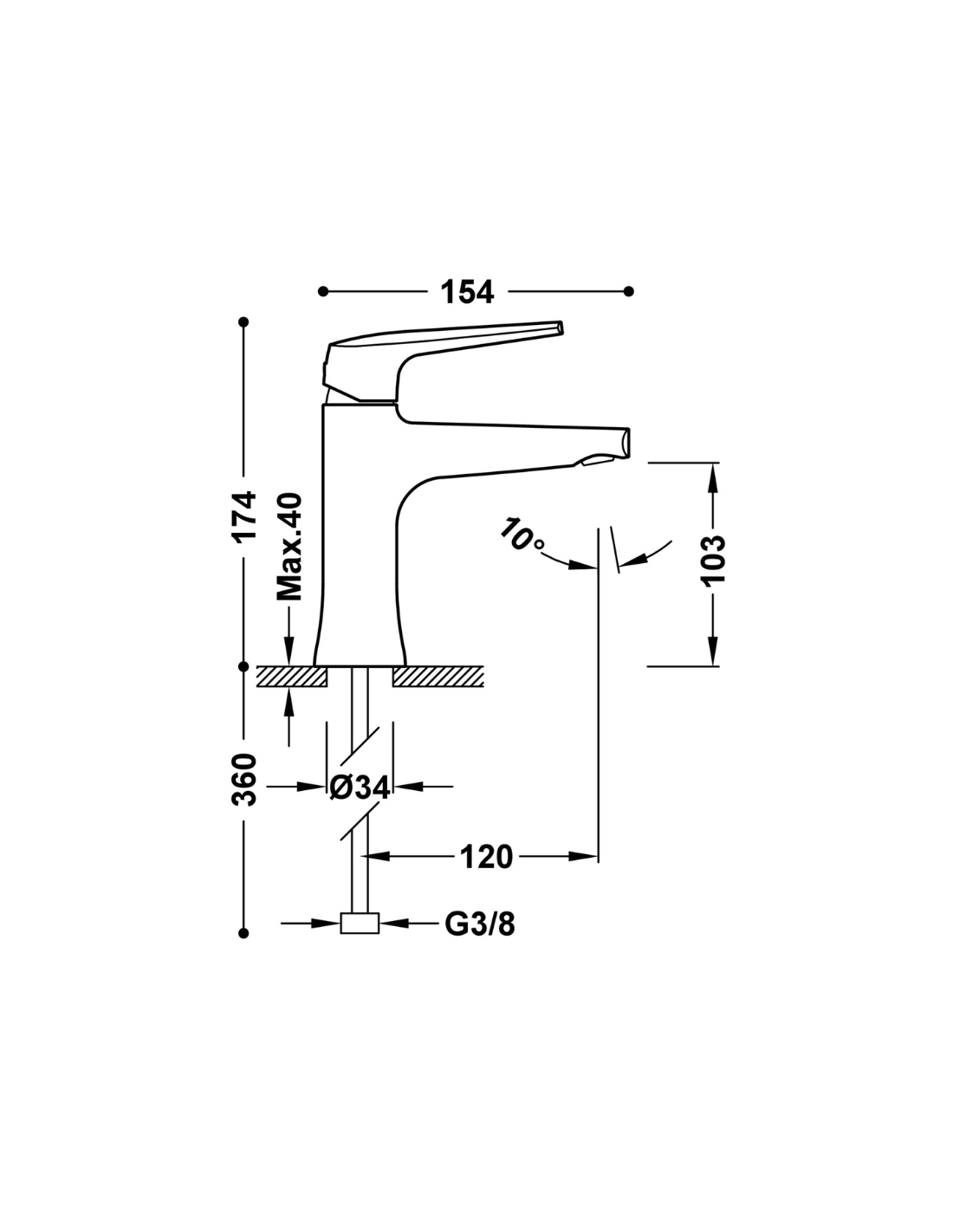 Medidas Grifo de lavabo Fuji TRES