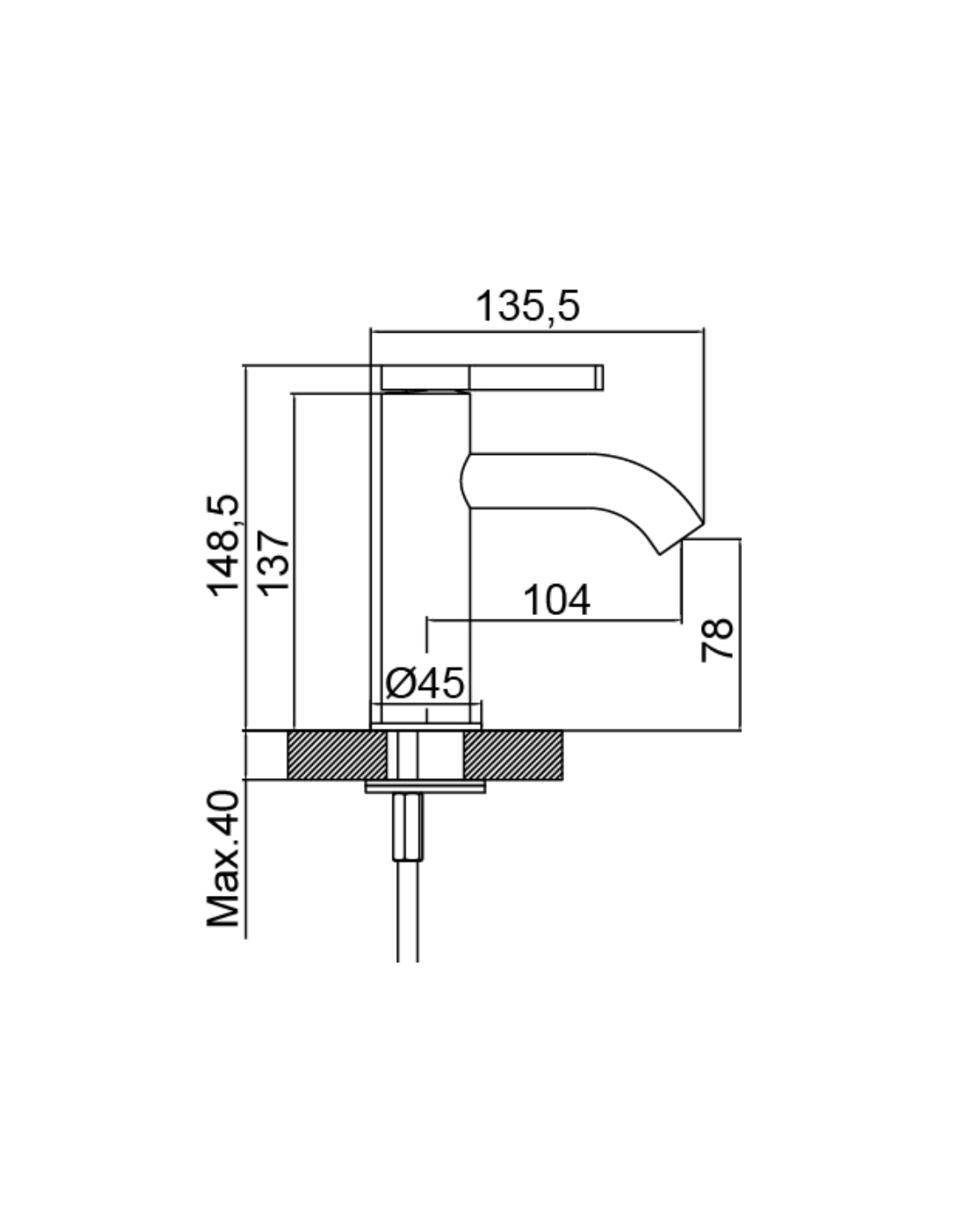 Medidas grifo de Lavabo Urban flow AQG