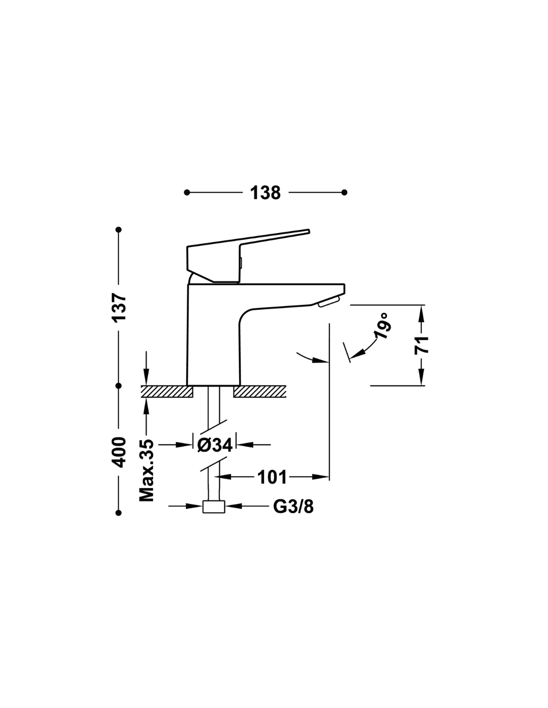 BASE-TRES Monomando bañera-ducha
