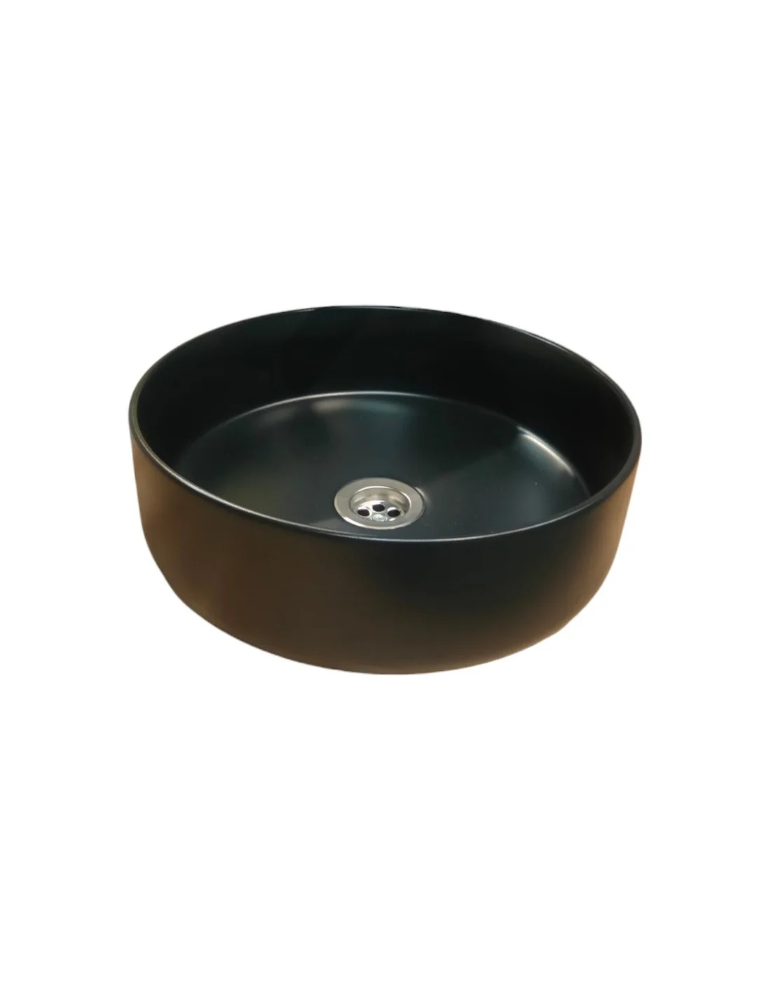 Lavabo cerámica sobre encimera Ø35cm modelo Como, color mármol negro con vetas.