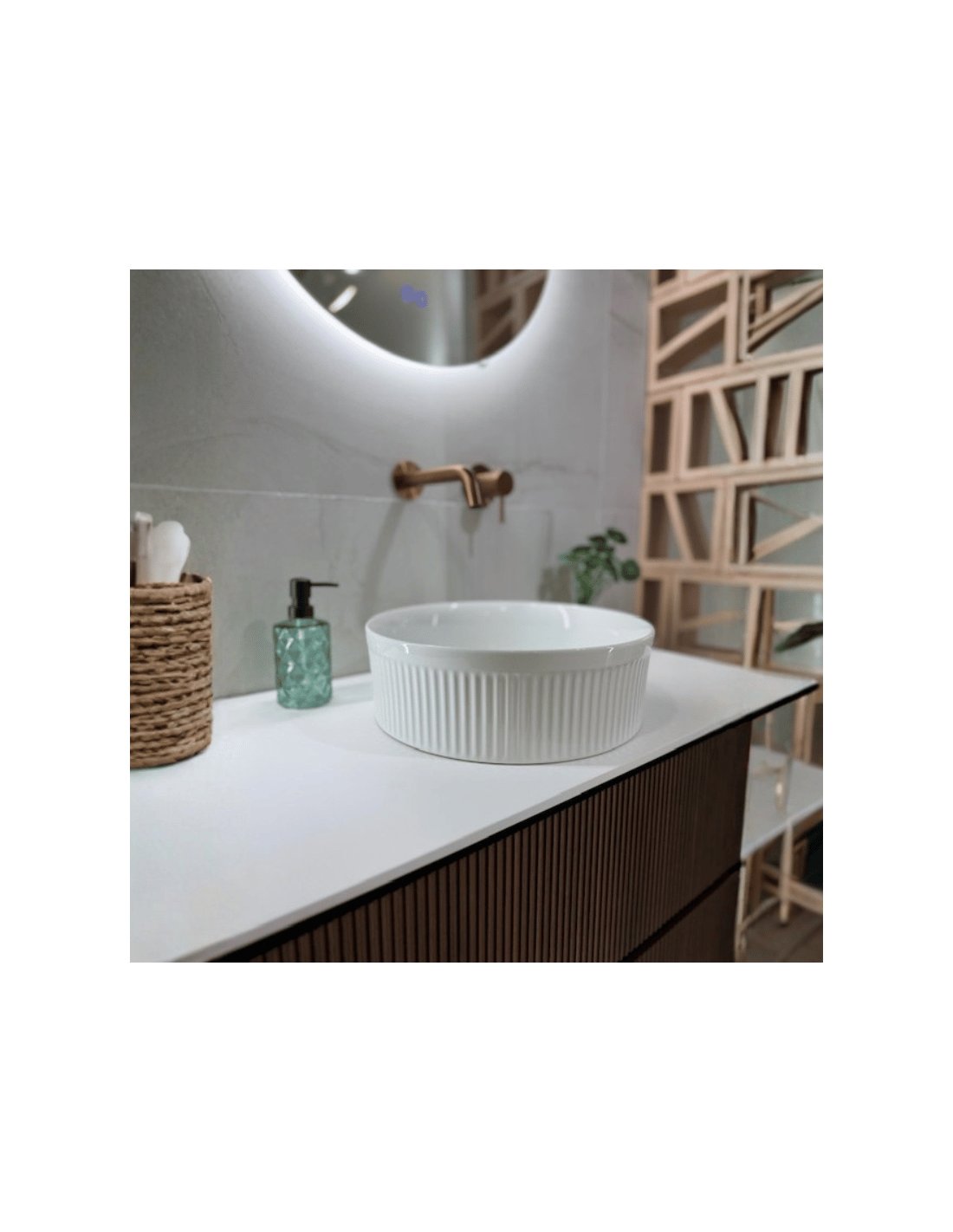 Lavabo redondo sobre encimera Ø36, color blanco brillo.