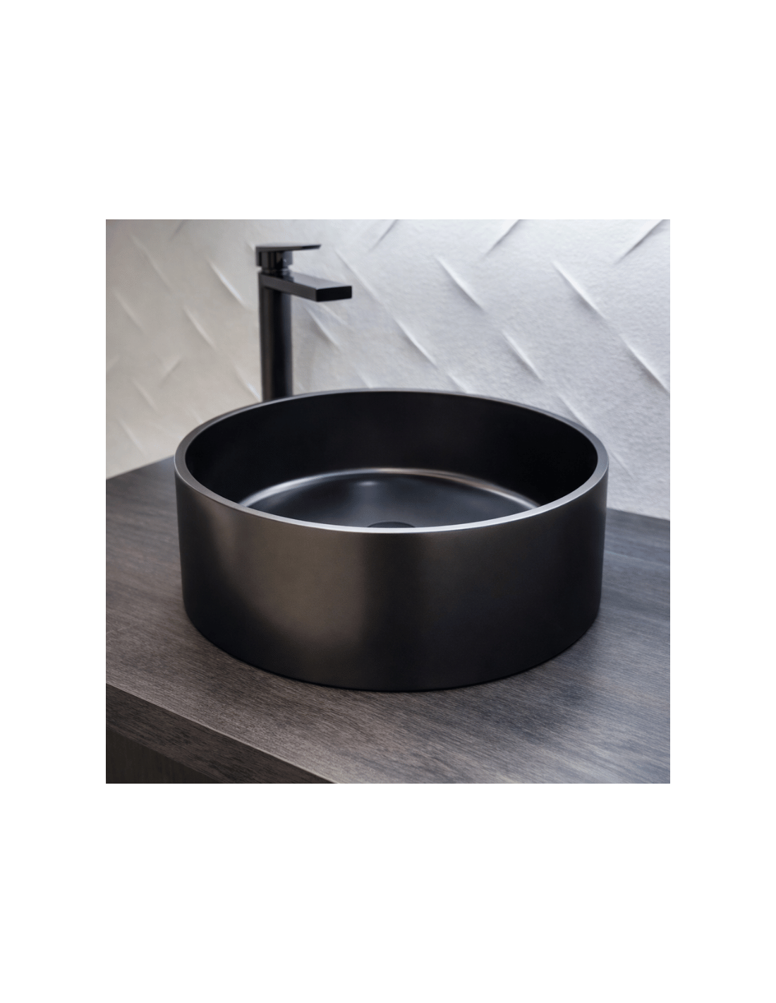 Lavabo cerámica sobre encimera Ø35cm modelo Como, color mármol negro con vetas.