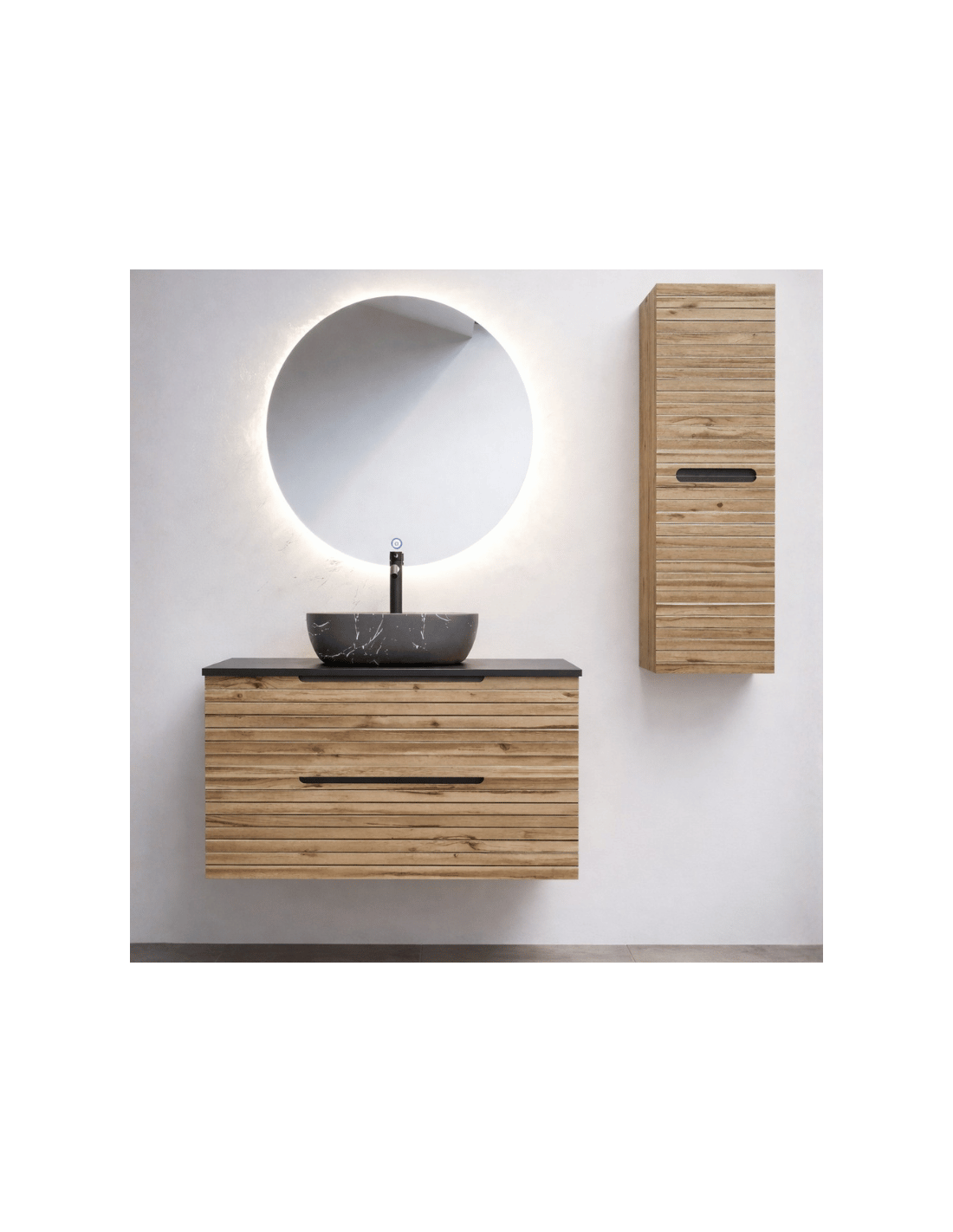La columna de baño madera RUANDA, tiene 4 baldas interiores y es REVERSIBLE